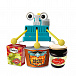 В комплекте: база, корпус редуктора (2 половины), крышка, крышка для батареек, цилиндр, опора цилиндра, барабанные палочки (3 шт.), держатель глаз, ноги (3 шт.,), мотор, колышки (24 шт.), маленькая двойная шестерня, оси (2 шт.), колпачки для проводов (2 шт.), диск сцепления, большая двойная шестерня, глаза (2 шт.), винты (9 шт.), подставки для крышек (4 шт.), подставки для банок (2 шт.)